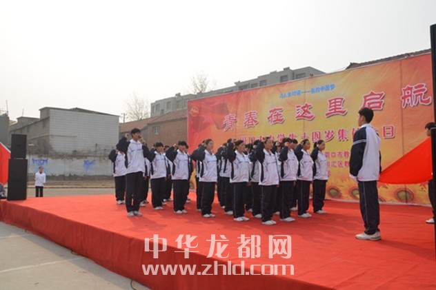 ????周口市中學(xué)生14歲集體生日慶?;顒釉凇陡鎰e童年》的朗誦聲中開始?!肚啻焊卸髌贰ⅰ都议L寄語》和《老師寄語》鼓舞學(xué)生用責(zé)任導(dǎo)航人生,用青春放飛理想?;顒又校瑦坌钠髽I(yè)代表劉光中董事長向?qū)W生們贈送了生日蛋糕,市政協(xié)副主席楊珺與學(xué)生代表一起切生日蛋糕,并和一千多名中學(xué)生許下了青春的愿望。在中學(xué)生十四歲集體生日慶祝過程中,市人大副主任、市總工會主席游保峰為該?!扒嗄曛驹刚叻?wù)隊”授旗。