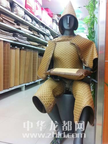 ??? 5月12日,記者在周口市區(qū)七一中路某大型超市看到,營業(yè)員把多種涼席產(chǎn)品裝飾在一個坐姿模特身上,在人來人往的客流中,在營業(yè)員招攬顧客的吆喝聲中,這位坐等客人上門的“蓑笠翁”不用說一句話,卻賺足了市民眼球。晚報記者 徐松 攝