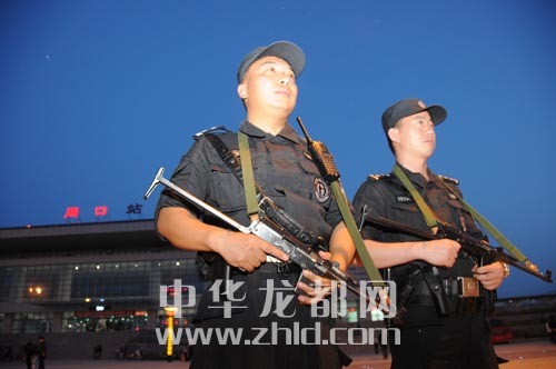 荷槍實彈的特警在火車站巡邏