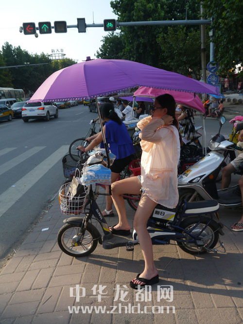 ????在市區(qū)街頭,許多市民穿上防曬衣或撐起遮陽(yáng)傘。游泳池則成為市民的避暑樂(lè)園。