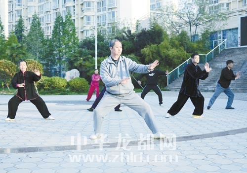 星龍華緣廣場(chǎng)上晨練的社區(qū)居民。(本報(bào)記者 攝)
