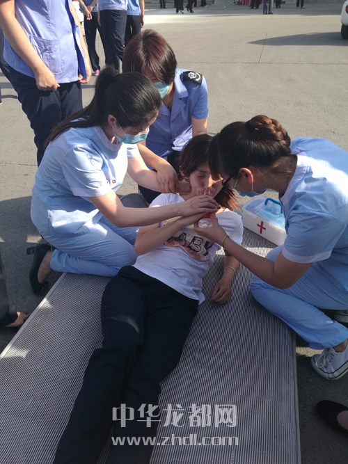 ????在模擬車站大廳發(fā)生火災(zāi)的演練中,車站值班站長(zhǎng)第一時(shí)間撥通119、120求救,并組織工作人員幫助旅客有序撤離。車站醫(yī)療搶救組對(duì)撤離到安全地帶的受傷旅客進(jìn)行施救(如圖二)。大廳內(nèi)人員全部撤離后,救援人員手持滅火器迅速組織滅火(如圖三)。