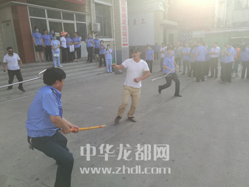 ????在防恐防暴的演練中,兩名手持兇器的歹徒在車站大廳里轉(zhuǎn)悠,車站值班站長(zhǎng)見此情況后,想方設(shè)法穩(wěn)定住兩名歹徒,隨后一邊安排工作人員疏散候車廳內(nèi)旅客,一邊組織工作人員拿起警棒、防爆叉與歹徒進(jìn)行搏斗(如圖四)。