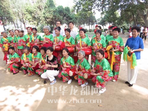 腰鼓隊成員與“粉絲”合影