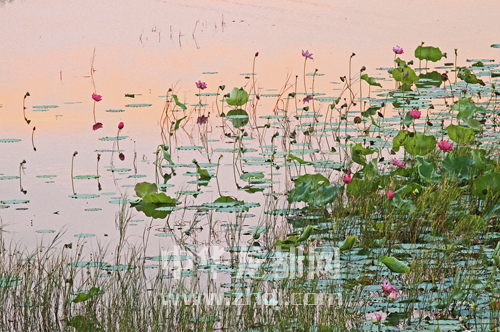 ????此時(shí)的荷塘,呈現(xiàn)出一派秋的氣象。雖然荷葉已經(jīng)卷曲枯萎,蓮蓬也已枯黃,扭曲的荷梗穿插其間,繁華褪盡,滿池清麗,卻呈現(xiàn)出一番別樣的秋韻之美。