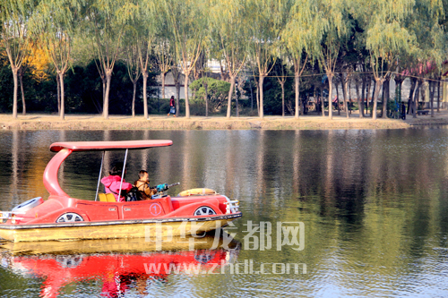????時值初冬,周口人民公園內(nèi)爛漫秋色還未褪去,紅楓、銀杏等樹葉,紅似火、黃如金,色彩斑斕,組成了如詩如畫的美景。人們置身其中,其樂融融。葛英 攝