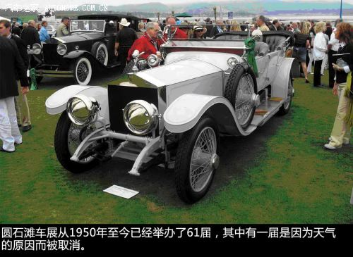 ??? 第二次的圓石灘車(chē)展是在1951年5月27日舉辦,當(dāng)時(shí)只有23輛車(chē)參展。接下來(lái)幾十年中,除了1960年,因?yàn)樘鞖鈵毫拥脑蛉∠?chē)展;以及1963到1965年間長(zhǎng)期大雨磅礴導(dǎo)致了參展草地?fù)p壞不可用,車(chē)展地點(diǎn)出現(xiàn)一些變動(dòng)外,圓石灘車(chē)展一直舉辦的都非常順利,并且由于其參展車(chē)型都是價(jià)值連城的古董老爺車(chē)及未來(lái)的概念車(chē),所以它還獲得了“全球最豪華的汽車(chē)展”稱號(hào)。