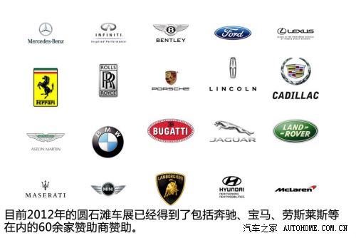 ??? 在贊助商方面,2012年的圓石灘車(chē)展到目前為止已經(jīng)有包括勞力士、蘭博基尼、寶馬、奔馳、法拉利等品牌在內(nèi)的60余家贊助商提供贊助,在現(xiàn)場(chǎng)你會(huì)看到很多這些品牌的廣告,當(dāng)然這些品牌的廣告及贊助費(fèi)的部分會(huì)被主辦方捐獻(xiàn)給慈善機(jī)構(gòu)。