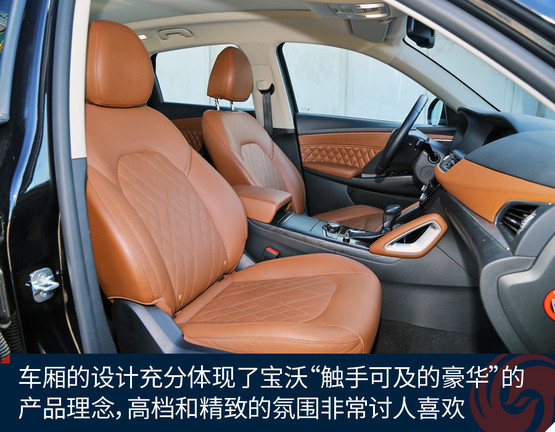 除了科技配置領先,寶沃BX7的車廂氛圍也讓人切實感受到這個品牌的誠意:我們試駕的四驅(qū)旗艦版車廂內(nèi)大量使用的皮革覆蓋件,并且采用漂亮的菱形縫線花紋點綴起來,這是賓利那個級別的頂級豪車慣用的裝飾手法;儀表臺、車門上沿的注塑材料都是很柔軟順手,特別是考慮到這款車尚不到25萬元的售價,寶沃的確兌現(xiàn)了他們所承諾的“觸手可及的豪華”。