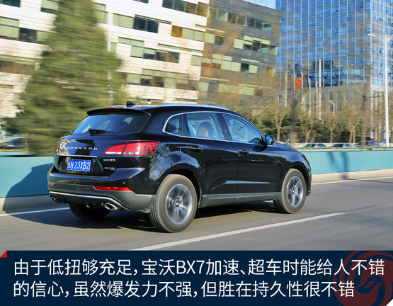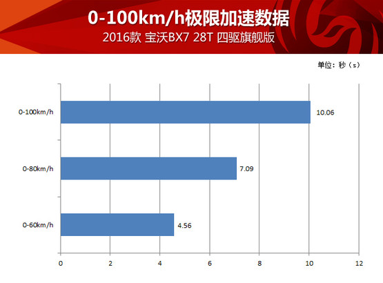由于有四驅(qū)系統(tǒng)保障,寶沃BX7四驅(qū)版車型在全力加速起步瞬間非常平穩(wěn),6AT變速器換擋還是平穩(wěn)優(yōu)先,所以全力加速時升檔也沒有太明顯的頓挫、動力中斷或者不平順,整個過程很舒服,而10秒出頭的測試成績對于這臺2.0T動力的中型SUV也很不錯,請別忘了因為與變速器的匹配,這臺2.0T發(fā)動機的扭矩被限制在300牛頓·米,也就是說這臺“高功率”發(fā)動機其實并沒使出全力,我們完全有理由相信解除封印后它理應跑得更快。