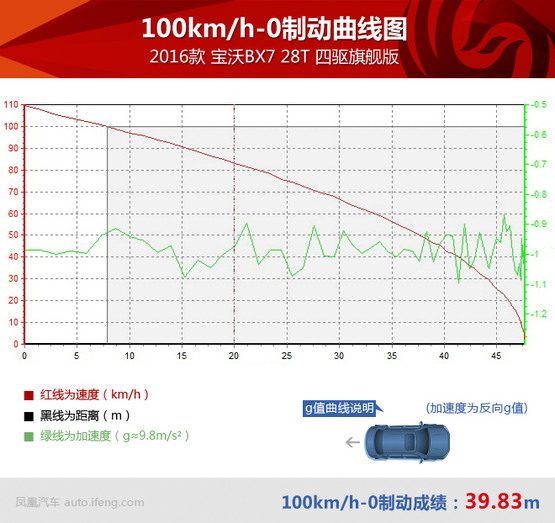 加速過后就要減速,寶沃BX7的制動系統(tǒng)在測試中經(jīng)受住考驗,不到39米的成績對于一臺SUV而言已經(jīng)算是很不錯,而且多次測試并未出現(xiàn)制動力有衰減的現(xiàn)象。
