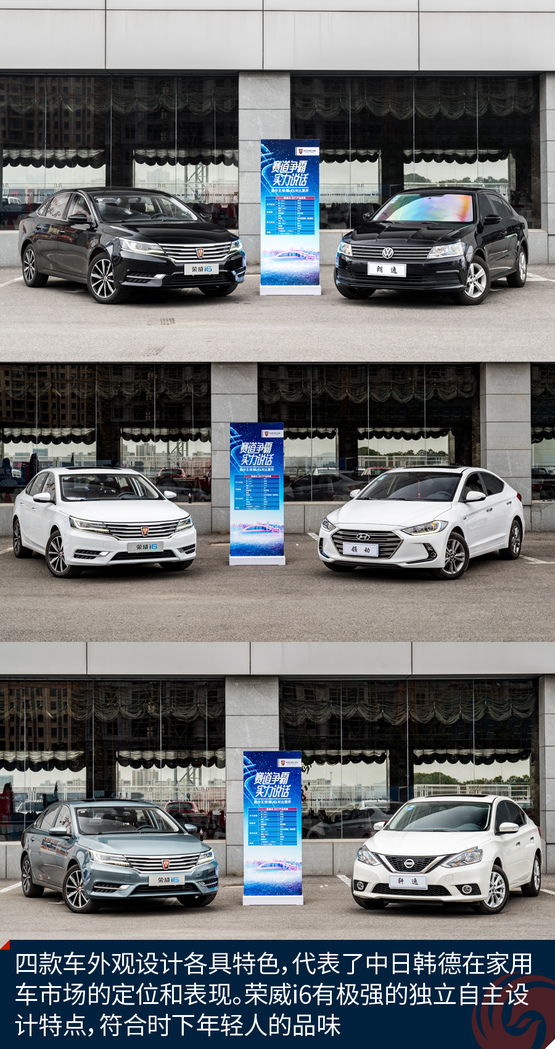 鳳凰汽車·搶先試駕?榮威i6可以說打響了互聯(lián)網(wǎng)家轎的第一槍,它是繼RX5之后,榮威旗下的第二款重量級產(chǎn)品,延續(xù)了榮威RX5家族律動美學(xué)的優(yōu)良基因。上市十天訂單便突破萬輛大關(guān),是一款非常有潛力挑戰(zhàn)合資競品的車型。但是光說不練,假把勢。今天我們就在江蘇萬馳的賽道場地內(nèi),特意選取了同級合資老炮軒逸16款1.6LXV CVT智享版、朗逸17款1.6L自動舒適版、領(lǐng)動?16款 1.4T 雙離合炫動?精英型,和榮威i6 20T互聯(lián)網(wǎng)智尊版做個對比,看看這些銷量過萬的合資家轎與新晉的小鮮肉榮威i6到底誰更勝一籌?