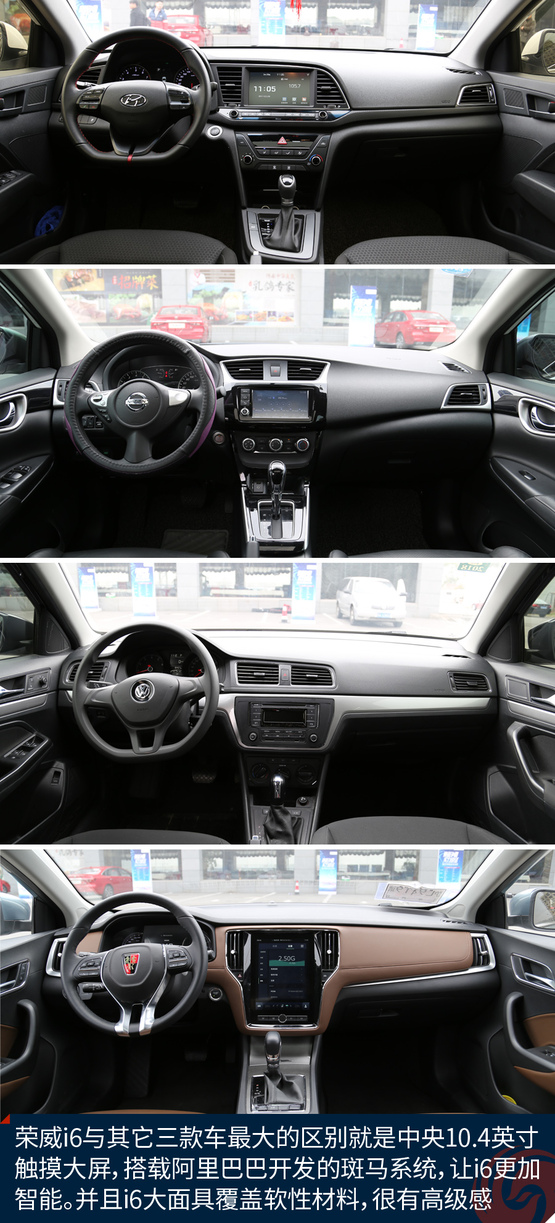 榮威i6內(nèi)飾軟包比例達到80%,能摸到的地方幾乎都采用了軟性材料,舒適溫馨的車內(nèi)氛圍也是家庭用戶非常看重的。榮威i6內(nèi)飾最大亮點在于10.4英寸的中控屏和和7英寸液晶儀表盤,讓科技感和豪華感超越了另外三款合資車型。相比榮威i6來說,它們的內(nèi)飾過于老套了。同樣i6的做工也絲毫沒有遜色于對手,在內(nèi)飾有機物揮發(fā)指標(biāo)上遠低于國家車內(nèi)空氣質(zhì)量標(biāo)準(zhǔn)水平。