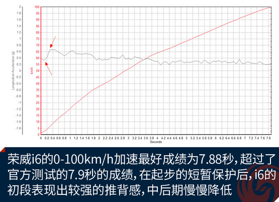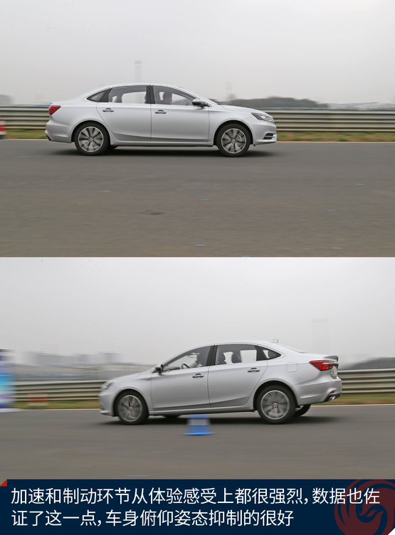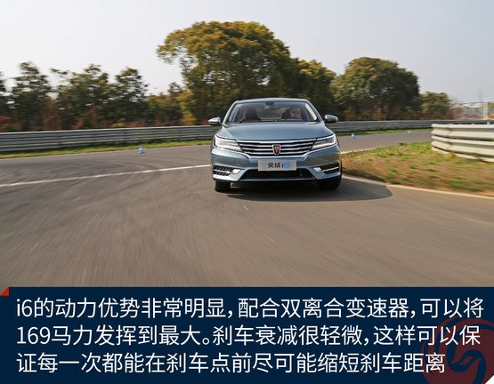 在動力方面,榮威i6搭載了上汽“藍芯”SGE 20T發(fā)動機,采用缸內(nèi)中置直噴渦輪增壓、高效氣門配氣機構(gòu)等國際領(lǐng)先技術(shù),配合TST 7速雙離合變速器,榮威i6最大功率169馬力,比朗逸、軒逸和領(lǐng)動分別高出了59馬力、43馬力、39馬力。而實際測試中也證實了這一點,榮威i6在加速和剎車方面確實領(lǐng)先于競品車型。7.88秒的0-100km/h的加速成績確實讓人大吃一驚,榮威i6表現(xiàn)出了極高的運動化調(diào)教。剎車方面,榮威i6也表現(xiàn)相當(dāng)出色,36.59米的剎車距離,可以跟一些性能車相提并論。300mm的通風(fēng)剎車片功不可沒,整個制動過程有力平穩(wěn),車身懸掛對于點頭的抑制也很到位。