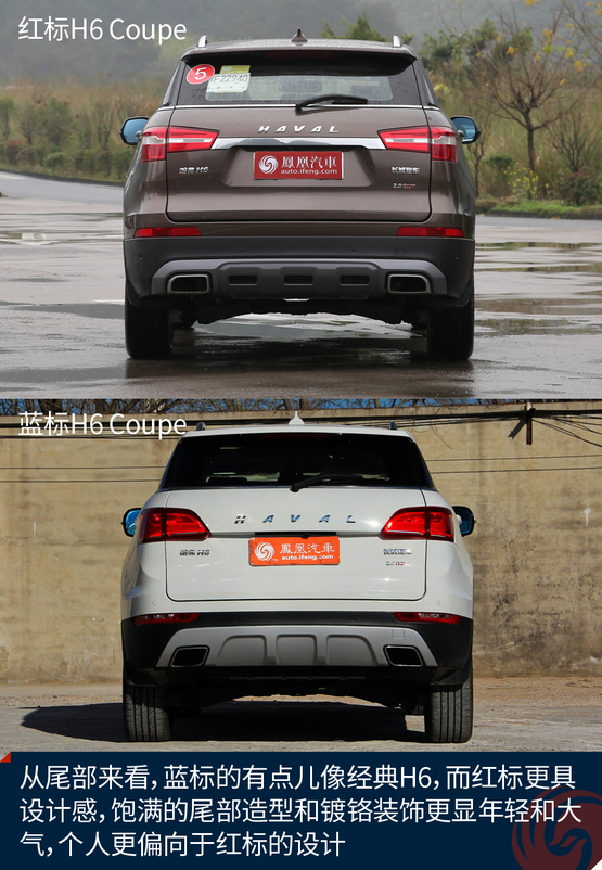 從車尾來看,個人認為新款的紅標好像比藍標更加年輕,可能是設(shè)計年款導(dǎo)致的,新一些的設(shè)計更加年輕,當(dāng)然也不失沉穩(wěn),不過藍標的H6 Coupe看起來確實更具個性。紅標更符合大眾的審美。