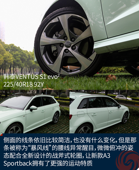 側(cè)面的線條依舊比較簡(jiǎn)潔,也沒(méi)有什么變化,但是那條被稱(chēng)為“暴風(fēng)線”的腰線異常醒目,微微俯沖的姿態(tài)配合全新設(shè)計(jì)的戰(zhàn)斧式輪圈,讓新款A(yù)3 Sportback擁有了更強(qiáng)的運(yùn)動(dòng)特質(zhì)。
