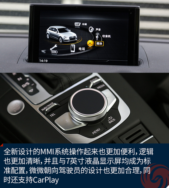 相比較外觀的改變,內(nèi)飾的變化就要少了一些,最直觀的變化莫過(guò)于全新設(shè)計(jì)的真皮方向盤(pán),不僅好看也十分的好用,發(fā)光的迎賓踏板進(jìn)一步增加了車(chē)輛的高級(jí)感,中控面板上的鋁合金材質(zhì)的裝飾條質(zhì)感出色,不僅如此,還有多種樣式和材質(zhì)可選;而門(mén)板內(nèi)的Alcantara材質(zhì)進(jìn)一步提升了舒適的觸感,當(dāng)然座椅也同樣采用了Alcantara。另外新增加的USB接口也進(jìn)一步增加了行車(chē)的便利性,這也讓A3車(chē)內(nèi)的USB數(shù)量增加到兩個(gè)。同時(shí),全新設(shè)計(jì)的MMI系統(tǒng)操作起來(lái)也更加便利,邏輯也更加清晰,并且與7英寸液晶顯示屏均成為標(biāo)準(zhǔn)配置,微微朝向駕駛員的設(shè)計(jì)也更加合理,同時(shí)還支持CarPlay。