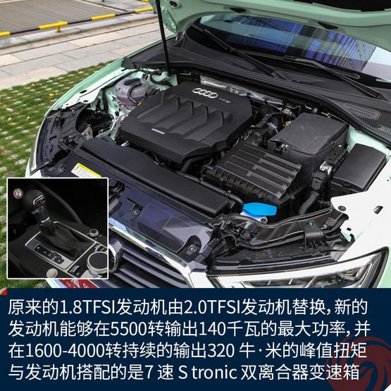 動(dòng)力的改變也許是此次另一個(gè)升級(jí)的重點(diǎn),除了1.4TFSI發(fā)動(dòng)機(jī),原來(lái)的1.8TFSI發(fā)動(dòng)機(jī)將由2.0TFSI發(fā)動(dòng)機(jī)替換,新的發(fā)動(dòng)機(jī)能夠在5500轉(zhuǎn)輸出最大功率為140千瓦,并在1600-4000轉(zhuǎn)持續(xù)的輸出320 ?!っ椎姆逯蹬ぞ?。與兩臺(tái)發(fā)動(dòng)機(jī)搭配的7 速 S tronic 雙離合器變速箱。憑借動(dòng)力的優(yōu)勢(shì),新A3 40TFSI車(chē)型的百公里加速時(shí)間縮短了0.1秒,但是油耗會(huì)相應(yīng)的有所減少。