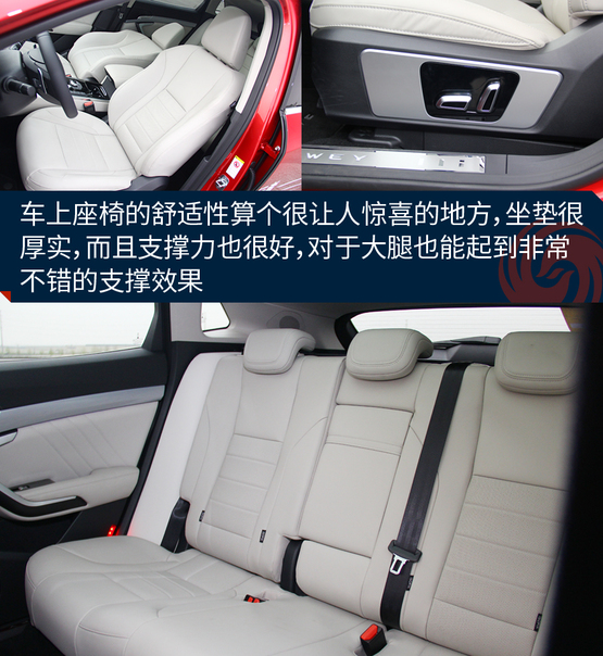 由于渦輪介入的時間稍晚一些,起步時不會讓你感覺特別的輕快,但也不會差到讓你無法接受,只要保持平常心就好;當這臺2.0升的渦輪增壓直噴發(fā)動機真的卯足了勁發(fā)力之后,360牛米的最大扭矩完全不是鬧著玩的,后背感覺有人在猛使勁的把你向前推。長城自主研發(fā)的7擋濕式雙離合變速器是新車的一大亮點,日常駕駛的過程中升降檔都有著不錯的平順性,不過起步初期離合器結(jié)合的速度還是稍微有一些慢,急加速時變速箱的反應(yīng)也不夠靈敏,這在一定程度上拖累了整體的動力表現(xiàn)。
