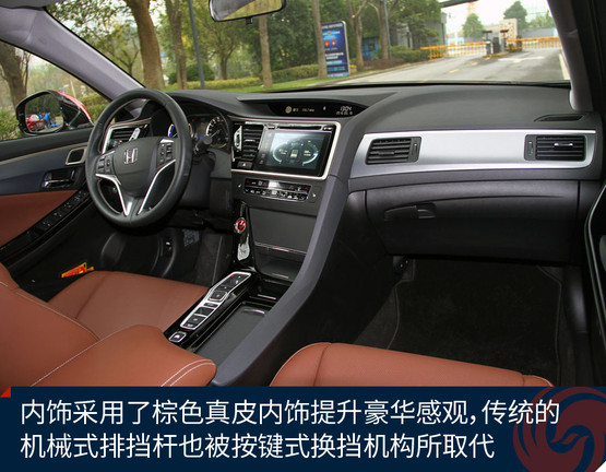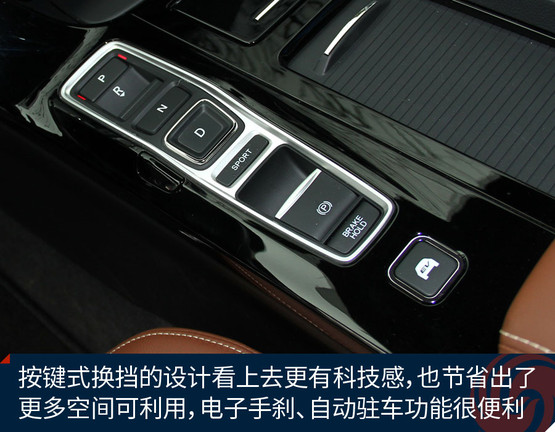 車內(nèi)采用了新的棕色真皮內(nèi)飾,而且還覺得缺了點(diǎn)什么。沒錯!之前的排擋桿不見了,取而代之的是按鍵式換擋機(jī)構(gòu),看上去更有科技感,控制區(qū)也更簡潔了。