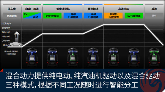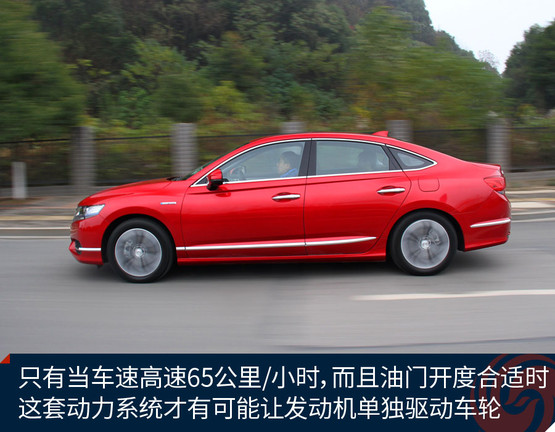 只有當(dāng)車速高于65公里/時且油門開度合適時,這套動力系統(tǒng)才會有可能讓發(fā)動機(jī)單獨(dú)驅(qū)動車輪,但此時其還有一部分工作是為電動機(jī)充電。而在此時,如果車輛向前的驅(qū)動力是依靠發(fā)動機(jī)來輸出的話,那么其電動機(jī)將不會為車輛提供動力。換句話說,也就是意味著思鉑?;靹拥倪@套i-MMD系統(tǒng)雖然在車上搭載著兩個動力源,但是平時在城區(qū)行駛,它在驅(qū)動車輛前行時更多情況下會使用到的有且只有一個。