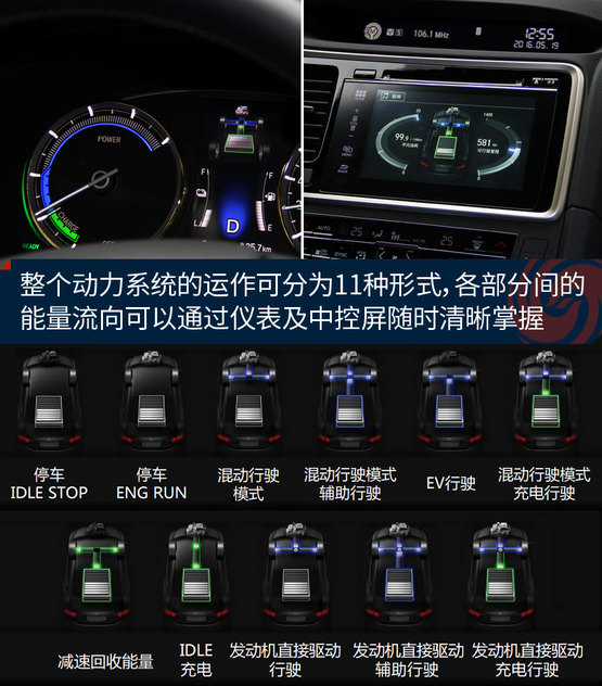 儀表也需要重新設(shè)計,左側(cè)的轉(zhuǎn)速表變成了動力顯示表。不過這跟雷克薩斯采用的液晶顯示方式不同,實體儀表只能固定在動力顯示的樣子,愛駕駛的人習(xí)慣看的轉(zhuǎn)速表就沒法兼得了。此外,儀表液晶屏和中控大屏都提供了能流量顯示功能,方便駕駛者隨時了解車輛能量的流動情況,也是個突顯逼格的利器。