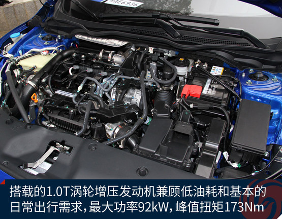 思域180TURBO車型搭載的是1.0升三缸渦輪增壓發(fā)動機(jī),賬面上擁有的最大功率為92kW/5500rpm,最大扭矩達(dá)到了173Nm/2000-4500rpm,基本能夠達(dá)到主流1.8升自吸發(fā)動機(jī)的水平。與之匹配的CVT無級變速器大家都比較熟悉,在本田品牌的車型中已經(jīng)有著廣泛的應(yīng)用。