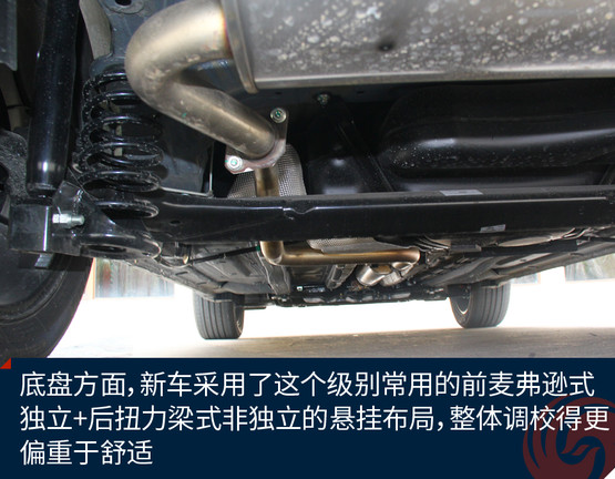 當(dāng)我真正的把它開起來以后,首先給我的第一感覺就是它的底盤不松散,特別的緊湊,即便在高速駕駛,也能給我很大的信心。雖然懸掛不出意外的用了前麥弗遜+后扭力梁的懸掛組合,但整車的舒適性很好,過個(gè)溝坎都基本能化解掉。