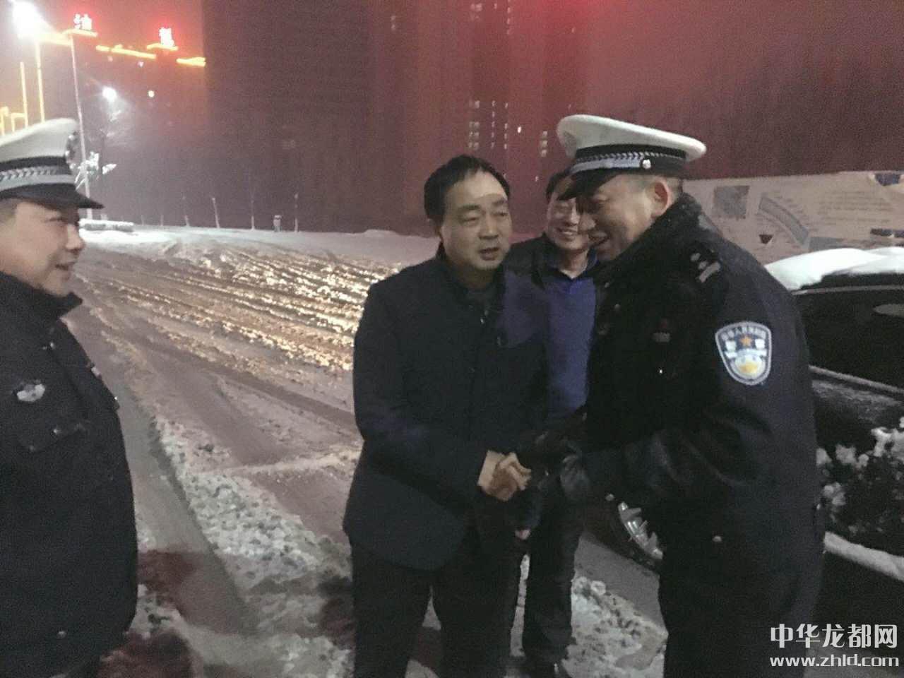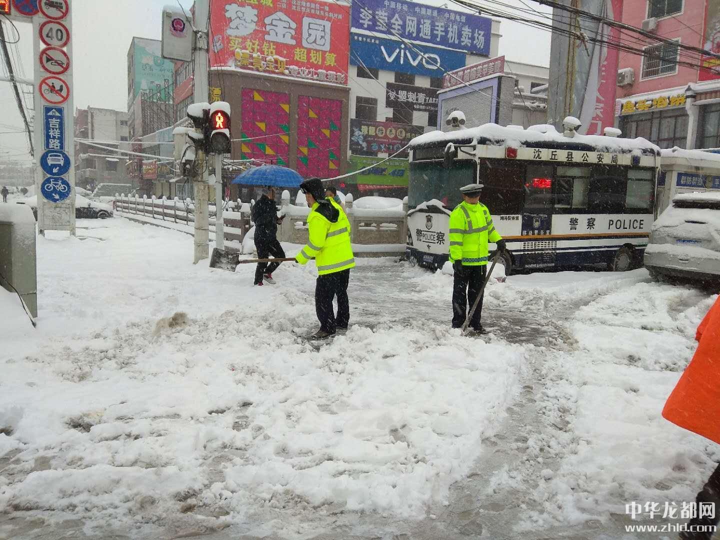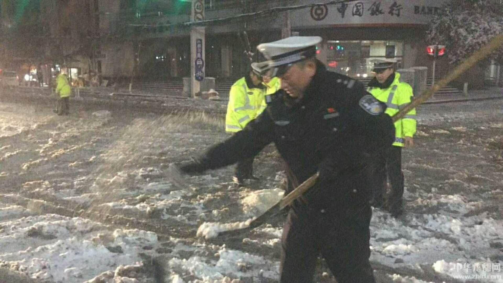 兩天,百多人、十噸鹽,無(wú)一起交通事故,交警們?cè)诤袌?jiān)守著,雪后的沈丘更顯暖意濃濃。
