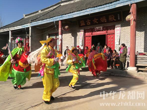 香客在盤古女媧殿外表演“竹馬”。
