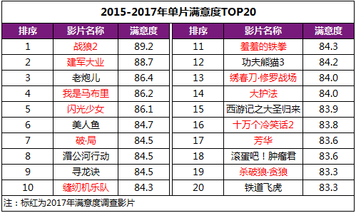 2017年電影觀眾滿意度增長明顯國產電影質量提升獲認可