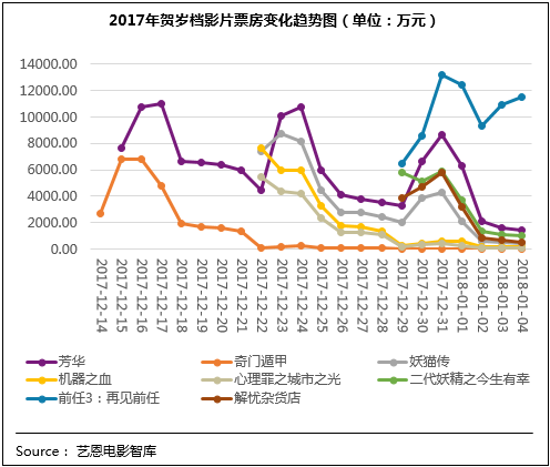 于12月29日上映的國產喜劇IP“前任系列”的第三部作品《前任3:再見前任》整體表現(xiàn)也較優(yōu)異,影片用接地氣的風格闡釋愛情與成長的主題,讓人捧腹又直戳人心,滿意度80.7分居檔期第二位;在良好口碑支撐下,影片票房也表現(xiàn)出了逆市上揚的巨大潛力。