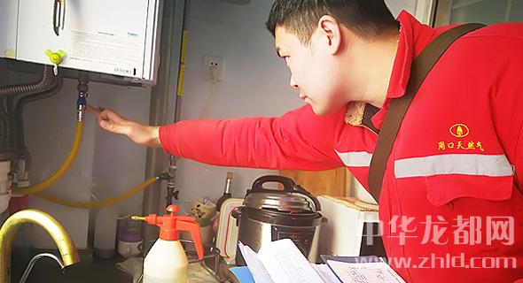 1月11日,周口天然氣公司技術(shù)員在一居民家中檢查天然氣安全使用情況。近日,我市氣溫下降,為切實保障我市居民燃氣設(shè)施的安全,周口天然氣公司工作人員對中心城區(qū)使用天然氣的用戶進行了冬季燃氣安全巡查活動。