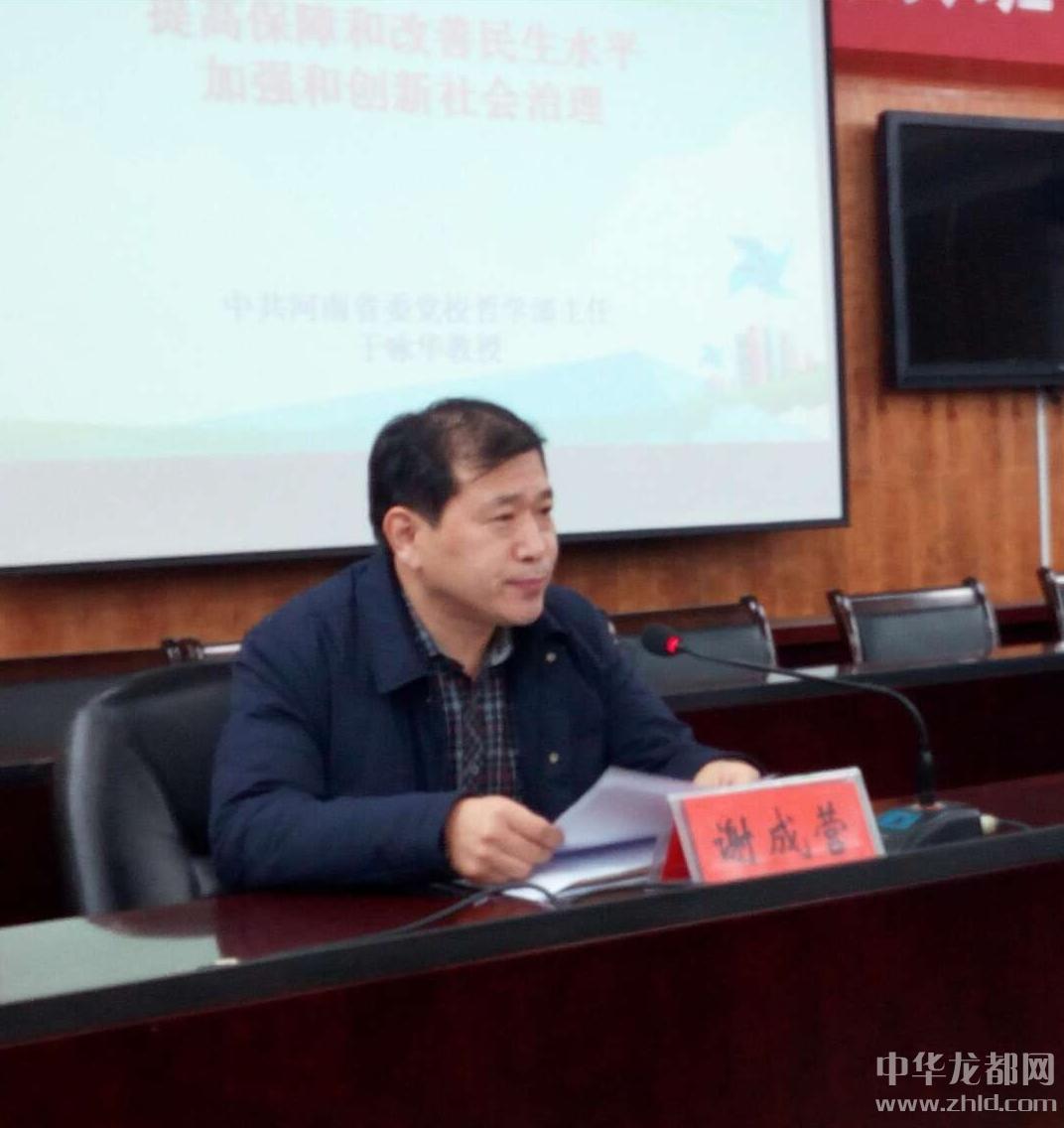 中華龍都網(wǎng)訊(周口報(bào)業(yè)全媒體記者馬治衛(wèi))1月12日晚上,為深入學(xué)習(xí)貫徹黨的十九大精神,把太康縣干部群眾的思想和行動(dòng)統(tǒng)一到黨的十九大精神上來(lái),太康縣第四期夜讀班講座開(kāi)講。太康縣在家的四大班子領(lǐng)導(dǎo)、各鄉(xiāng)鎮(zhèn)黨政正職、縣直各單位主要負(fù)責(zé)人及太康縣宣講團(tuán)全體成員在該縣綜合樓一樓會(huì)議室聆聽(tīng)了講座。此次講座由河南省委黨校于詠華教授授課,太康縣縣委常委、宣傳部長(zhǎng)謝成營(yíng)主持并講話。