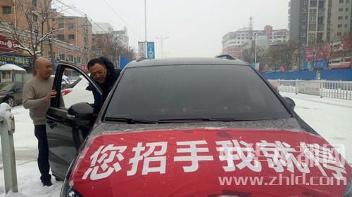 當日14時30分許,天空中飄著雪花,記者在大慶路見到這位愛心司機趙明禮時,他開車載著4名乘客。