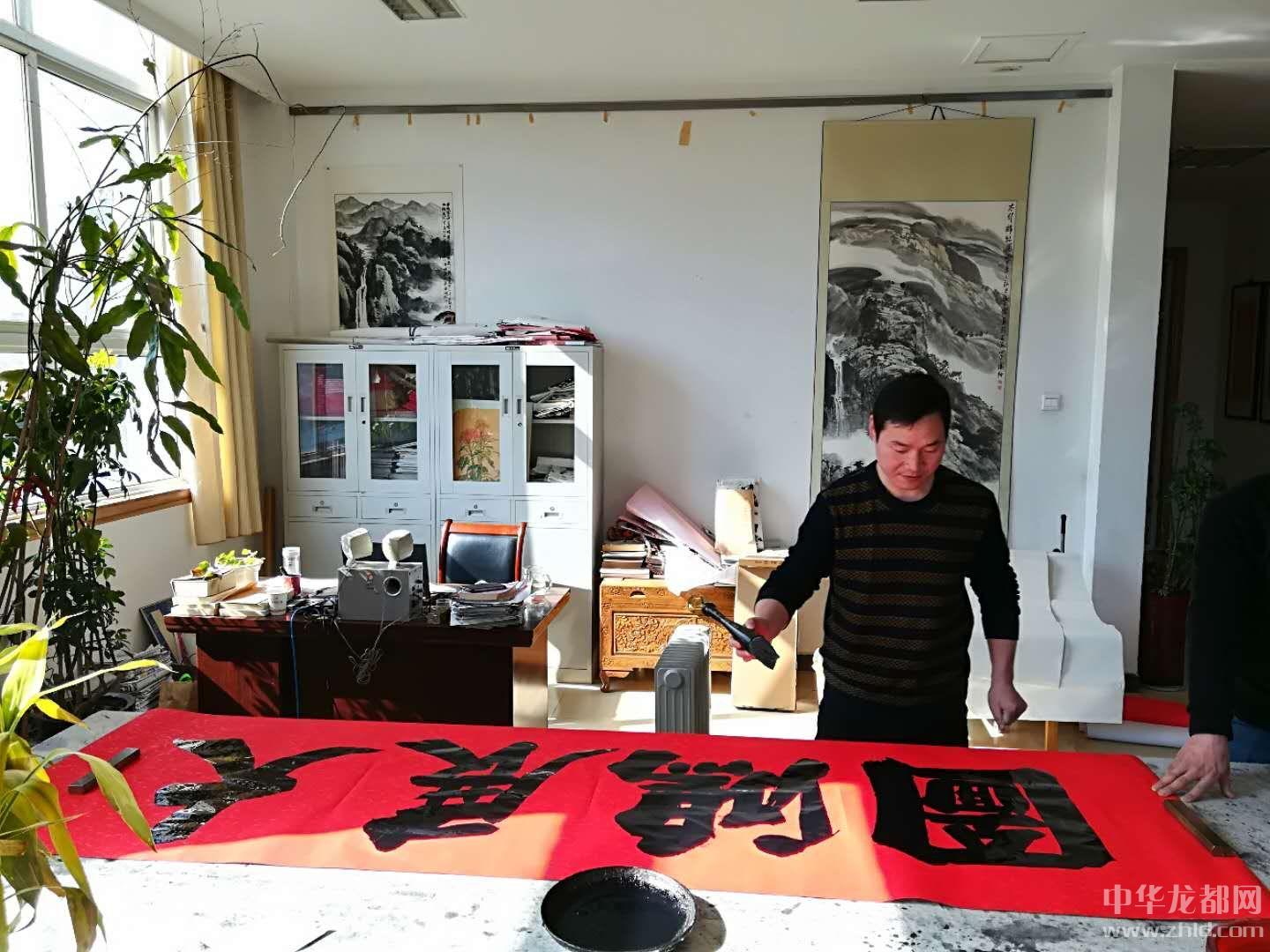 中華龍都網(wǎng)訊(周口報(bào)業(yè)全媒體記者 王晨)無(wú)聯(lián)不成春,有聯(lián)春更濃。2月3日,青年書(shū)法家邢懷章潑墨揮毫,為周口報(bào)業(yè)傳媒集團(tuán)書(shū)寫(xiě)巨幅春聯(lián),字大如斗,給周口報(bào)人送去新春祝福。