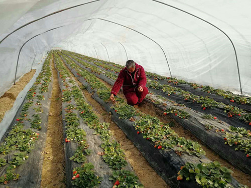 2016年,在周口職業(yè)技術(shù)學(xué)院的資助和專(zhuān)業(yè)老師的指導(dǎo)下,賈留功在自家的責(zé)任田里建起了草莓大棚。他用學(xué)到的草莓栽培技術(shù)精心管理,草莓長(zhǎng)勢(shì)很好,當(dāng)年就獲得了不菲的收入,成為全村第一個(gè)靠技朮幫扶淘到第一桶金的貧困戶。