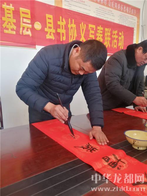中華龍都網(wǎng)訊(周口報(bào)業(yè)全媒體記者 徐松)2月8日上午,由鄲城縣委統(tǒng)戰(zhàn)部駐村辦、鄲城縣文聯(lián)、鄲城縣青年書法家協(xié)會(huì)共同組織的“禮贊新時(shí)代,新春送萬(wàn)福——鄲城縣文聯(lián)紅色文藝輕騎兵新春走基層青年書法家送萬(wàn)福進(jìn)萬(wàn)家義寫”活動(dòng)在鄲城縣虎崗鄉(xiāng)后趙行政村村室舉行,來(lái)自鄲城縣青年書法家協(xié)會(huì)的十余名著名書法家在現(xiàn)場(chǎng)揮毫潑墨,義務(wù)書寫了二百幅“福”字和春聯(lián),用喜盈盈、紅燦燦的春聯(lián)為廣大貧困戶提前送去狗年的祝福。