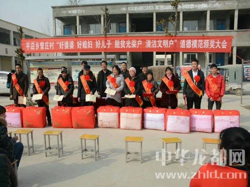 中華龍都網(wǎng)訊(周口報(bào)業(yè)全媒體記者 付永奇 趙永昌 文/圖))2月10日下午,商水縣平店鄉(xiāng)曾莊小學(xué)操場(chǎng)內(nèi),人頭攢動(dòng)、熱鬧非凡,村里評(píng)選出來(lái)的10位好婆婆、好媳婦、好兒子、清潔文明戶、脫貧光榮戶等“五好”群眾代表身披綬帶、胸戴紅花,臉上都洋溢著幸福的喜悅;一些民間文藝團(tuán)體分別助興表演了挑花籃、扇子舞、廣場(chǎng)舞等喜慶的節(jié)目,把現(xiàn)場(chǎng)氣氛烘托得異常隆重?zé)崃?。“為弘揚(yáng)社會(huì)公德、家庭美德,提升群眾素質(zhì)和文明程度,春節(jié)來(lái)臨之際我們召開(kāi)‘五好’表彰大會(huì),下面有請(qǐng)鄉(xiāng)黨委副書(shū)記、鄉(xiāng)長(zhǎng)徐汝濤給大家講話......”隨著主持人、鄉(xiāng)紀(jì)委書(shū)記劉新光的開(kāi)場(chǎng)白,臺(tái)下響起了一陣熱烈的掌聲?!伴_(kāi)展好婆婆、好媳婦、好兒子、清潔文明戶、脫貧光榮戶等模范家庭人物評(píng)選是我鄉(xiāng)精神文明建設(shè)工作的一項(xiàng)重大舉措,也是脫貧攻堅(jiān)、農(nóng)村人居環(huán)境整治、文明鄉(xiāng)風(fēng)提升的部分內(nèi)容,更是弘揚(yáng)孝親敬老、勤勞致富、講究衛(wèi)生等優(yōu)良傳統(tǒng)的需要。全鄉(xiāng)各村都要通過(guò)召開(kāi)評(píng)選表彰大會(huì),引導(dǎo)廣大人民群眾學(xué)先進(jìn)、爭(zhēng)先進(jìn),為文明和諧平店建設(shè)做出更大的貢獻(xiàn)......”徐汝濤提出殷切的希望。曾莊行政村“兩委”成員、駐村工作隊(duì)、第一書(shū)記及部分群眾200余人參加了會(huì)議。與會(huì)領(lǐng)導(dǎo)為此次層層推薦評(píng)選出的好婆婆、好媳婦、好兒子、清潔文明戶、脫貧光榮戶頒發(fā)了榮譽(yù)證書(shū)和獎(jiǎng)品。據(jù)村支部書(shū)記曾紀(jì)靈介紹,這些“五好”模范都有感人的故事,或是講究衛(wèi)生、勤儉持家,孝老敬親、患難與共;或是鄰里互助、脫貧致富;他們用實(shí)際行動(dòng)證明了自己對(duì)文明風(fēng)尚的價(jià)值追求,在生活中書(shū)寫了一個(gè)個(gè)接地氣的好故事,為廣大家庭樹(shù)立了好榜樣。受表彰的好婆婆胡秀英說(shuō):“把媳婦當(dāng)閨女,啥時(shí)候也不會(huì)吵架生氣......”清潔文明戶朱國(guó)申說(shuō):“農(nóng)村環(huán)境臟亂差,咱要帶頭改變它......”脫貧光榮戶劉前進(jìn)說(shuō):“國(guó)家扶貧政策好,不如早點(diǎn)摘掉貧困帽!”