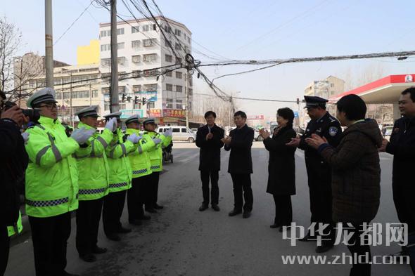 一路慰問一路播撒黨的溫暖。在鄲城縣城科技大道與人民路口,趙素萍一行專門下車慰問了一線交警?!袄洳焕洌啃』镒?。這衣服暖和不?”趙素萍用手摸了摸一位交警的值勤服問。“不冷,這是俺縣里才配發(fā)的保暖服,防雪防風(fēng)防雨。再說了,省領(lǐng)導(dǎo)來慰問,俺心里更暖和?!苯痪臋C(jī)靈回答,把大家逗得哈哈大笑。趙素萍說:“你們不畏嚴(yán)寒的辛勤付出保障了城市的暢通,我代表省委、省政府向全縣民警同志們致以節(jié)日的問候,并通過你們向你們的家人表示節(jié)日的祝福,祝愿大家新春愉快,闔家幸福,身體健康。”