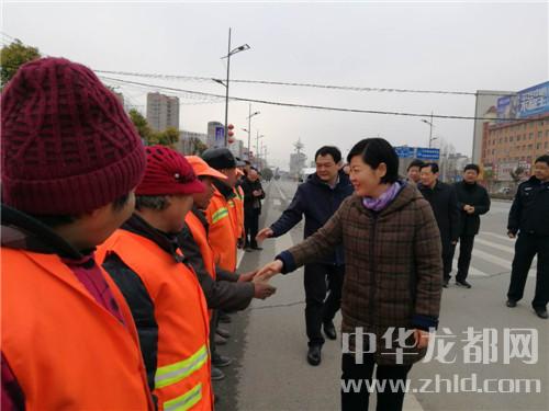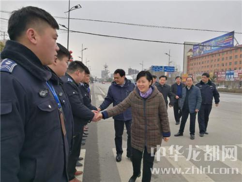 在鄲城縣城新華路與迎賓大道路口,羅文閣、李全林和一線值勤的環(huán)衛(wèi)工人、城管隊(duì)員一一握手,深切關(guān)心環(huán)衛(wèi)工人和城管隊(duì)員的冷暖?!翱词侄鄾?,要穿厚點(diǎn)兒呀。大年三十了,你們放棄和家人團(tuán)圓吃餃子的機(jī)會(huì),在為我們的縣城保潔,我們城市的清潔有賴于你們。你們辛苦了,給你們拜個(gè)年,祝你們身體健康?!绷_文閣向環(huán)衛(wèi)工人遞上慰問(wèn)金時(shí),樸實(shí)的話語(yǔ)、殷殷的關(guān)懷把黨的溫暖涌向環(huán)衛(wèi)工人的心窩兒?!安恍量?,領(lǐng)導(dǎo)來(lái)看俺,俺里比吃餃子暖和?!杯h(huán)衛(wèi)工人邊鼓掌邊道出了內(nèi)心的激動(dòng)。