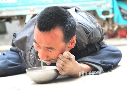 媽媽乘上一碗放在地上,紅印坐在墊子上,用腳夾著勺子,彎下腰來吃得很香??吹郊t印吃飯那么費力,在場人心里酸酸的,為紅印自強不息所打動著。可是當初娘倆可沒少流眼淚,李新蘭發(fā)現(xiàn)兒子兩只腳是靈活完好的,就開始訓練他用腳吃飯、洗臉。養(yǎng)大一個正常的孩子尚且不易,何況是張紅印這樣的孩子?李新蘭一遍遍地教,年幼的張紅印一遍遍地學。難為到受不了時,娘倆就抱在一起哭。