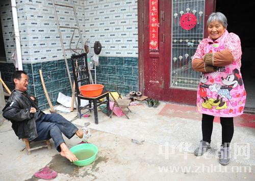 “這孩子40多年來,沒住過院,沒打過針,頭疼發(fā)燒會給媽媽示意,拿幾片藥一吃就好,這孩子命硬,一冬天也不洗回澡,到夏天爸爸媽媽幫他洗洗,有時候衣服一月才換一次?!编従訌埓髬屨f道?,F(xiàn)在紅印可以靈活的用雙腳幫媽媽做一些事情了。