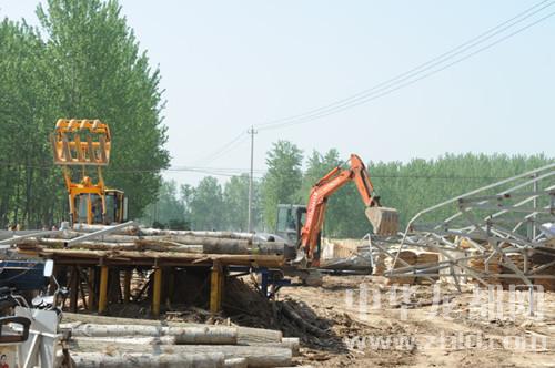 中華龍都網(wǎng)訊(周口報(bào)業(yè)全媒體記者 張勁松 通訊員 蘇千 文/圖)4月18日,東新區(qū)城管中心在該區(qū)國(guó)土局、許灣鄉(xiāng)政府的配合下,出動(dòng)執(zhí)法人員120多名,執(zhí)法車輛10輛,對(duì)許灣鄉(xiāng)程寺行政村6處違法占地、違章建設(shè)進(jìn)行強(qiáng)制拆除。