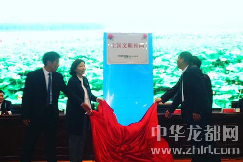 中華龍都網訊 (周口報業(yè)全媒體記者 侯俊豫 通訊員 孫琳琳)4月24日,是淮陽中學廣大師生難忘的日子。在學校報告廳召開的創(chuàng)建全國文明校園總結表彰大會上,市文明辦副主任劉成華,縣委常委、宣傳部長謝留定,副縣長薛燕和校長高遠征共同為該校成功創(chuàng)建“全國文明校園”揭牌。該校是我市首個獲此殊榮的學校。