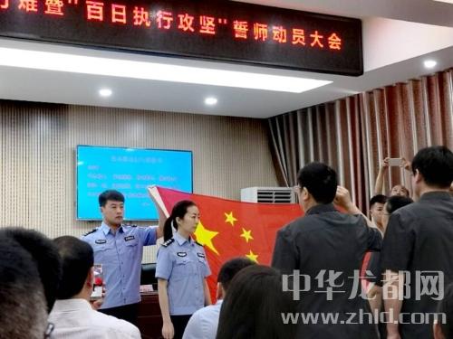會上,黨組成員、政治部主任邵士明同志宣布了《川匯區(qū)人民法院開展決勝基本解決執(zhí)行難暨“百日執(zhí)行攻堅(jiān)”實(shí)施方案》。執(zhí)行警務(wù)局孫現(xiàn)新局長和各執(zhí)行組組長分別遞交軍令狀,并作表態(tài)發(fā)言。全體執(zhí)行警務(wù)局干警就決勝基本解決執(zhí)行難暨“百日執(zhí)行攻堅(jiān)”戰(zhàn)向國旗進(jìn)行了宣誓。