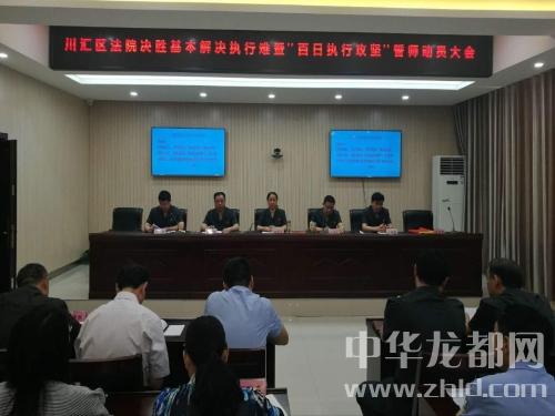 中華龍都網(wǎng)訊(記者姬慧洋 陳永團(tuán) 通訊員 馬殿力 文/圖)5月4日上午,川匯區(qū)法院組織召開決勝基本解決執(zhí)行難暨“百日執(zhí)行攻堅(jiān)”誓師動(dòng)員大會,該院班子成員、中層正職、執(zhí)行警務(wù)局全體人員參加了本次會議,川匯區(qū)人大、政協(xié)、區(qū)委政法委各位領(lǐng)導(dǎo)和部分人大代表、政協(xié)委員出席會議。
