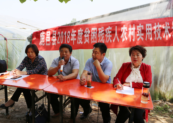 5月10日,在鹿邑縣馬鋪鎮(zhèn)完樓村殘疾人士付天軍的培訓(xùn)基地——蔬菜種植合作社助殘大棚內(nèi),來自鹿邑縣馬鋪鎮(zhèn)、渦北鎮(zhèn)產(chǎn)業(yè)集聚區(qū)的150多名建檔立卡貧困殘疾人,齊聚這里免費學(xué)習(xí)黃瓜種植技術(shù),付天軍在大棚內(nèi)手把手地進(jìn)行指導(dǎo),來自華陽學(xué)校的農(nóng)業(yè)專家李中蘭也應(yīng)邀在大棚內(nèi)對常見的病蟲害進(jìn)行詳細(xì)講解。