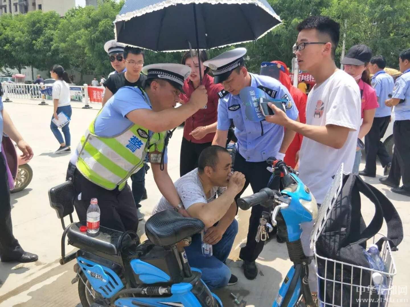 當(dāng)日上午12時(shí)許,在沈丘縣一高大門口附近等待的一名考生家長(zhǎng)癱坐在路邊,臉色蒼白,看起來(lái)身體極其不適。正在執(zhí)勤的劉濤見(jiàn)狀,一邊上前對(duì)車流、人流進(jìn)行疏導(dǎo),避免圍觀群眾太多引發(fā)意外事故,一邊迅速聯(lián)系沈丘縣人民醫(yī)院120急救車迅速前來(lái)?yè)尵取?/p>