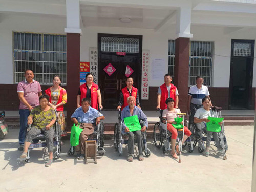 捐贈(zèng)現(xiàn)場(chǎng),縣政協(xié)經(jīng)濟(jì)界委員趙克飛將一萬元現(xiàn)金交到村干部手中,支持貧困戶進(jìn)行房屋改造;縣殘聯(lián)工作人員將一輛輛嶄新的輪椅交到殘疾人家屬手中,并攙扶殘疾人試用;政協(xié)委員郭留明和愛心商家將價(jià)值一萬多元的物資搬進(jìn)鋪李村愛心超市。鋪李村民王志勇看到政協(xié)委員和愛心人士為扶貧工作如此慷慨解囊,隨機(jī)拿出一千元現(xiàn)金交到愛心超市負(fù)責(zé)人手中,表示要為扶貧濟(jì)困出一份力量,群眾拍手叫好。